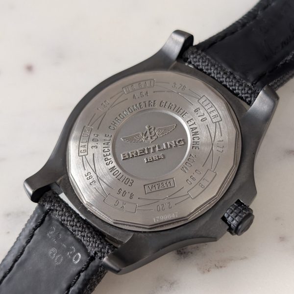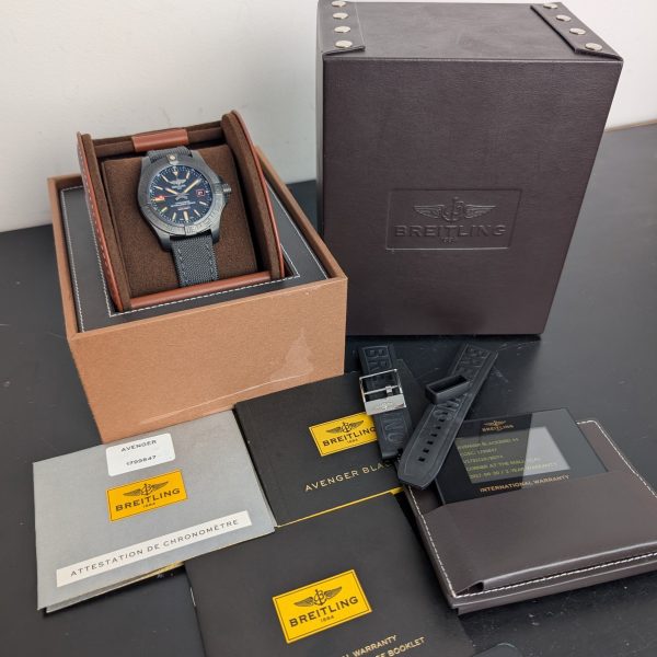 This watch dates from 2017. The watch is in immaculate unmarked unpolished condition and is part of a complete full set. Sale also includes Breitling rubber strap as well as the OEM nylon strap. Running perfectly still within COSC.