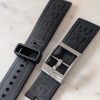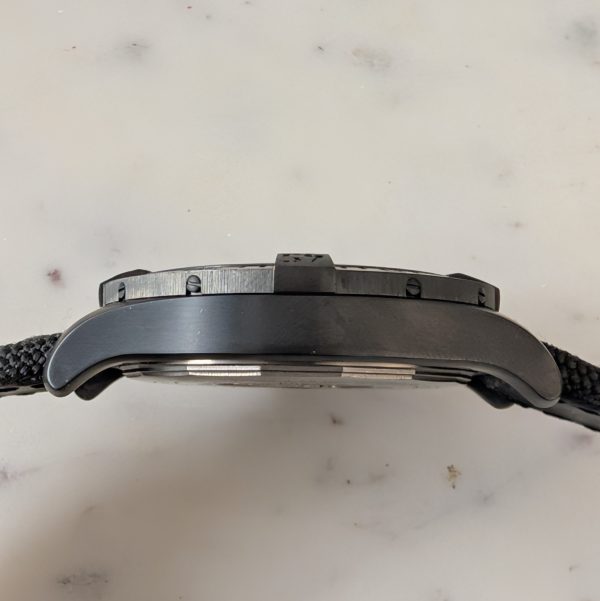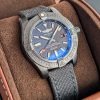 It’s high tech military grade textile strap moulds effortlessly to the wrist while the large unidirectional and ratcheted bezel reminds you of its presence with four rider tabs fitted around the edge making it exceptionally easy to handle. The volcano black dial makes for the perfect backdrop to the aviation inspired Superluminova coated indices and hands which are powered by the unbeatable Breitling 17 self winding mechanical movement. The automatic calibre equips this Breitling Avenger Blackbird 44 watch with a red tipped seconds hand, hour and minute function, a date window at 3 o clock and a power reserve of 38 hours. For one final touch of security and to assist in its water resistance of 200 metres, this men’s Breitling watch is fitted with sapphire crystal glass, a screw locked crown and screw in case back.